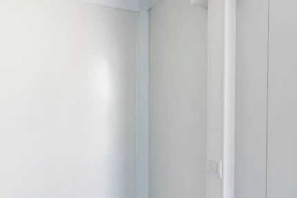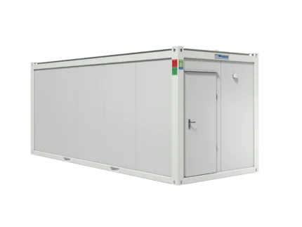 Módulo isolado ideal para casa de banho ou escritório económico com 14 m² de superfície (C: 6,06 m | L: 2,44 m). Robusto e isolado. Iluminação montada à superfície e tomadas elétricas. Marcação CE e conformidade com as normas contra incêndios. Decoração interior branca, chão cinza. Janela inclinável. Abertura da porta para o exterior. Disponível rapidamente mediante depósito.
