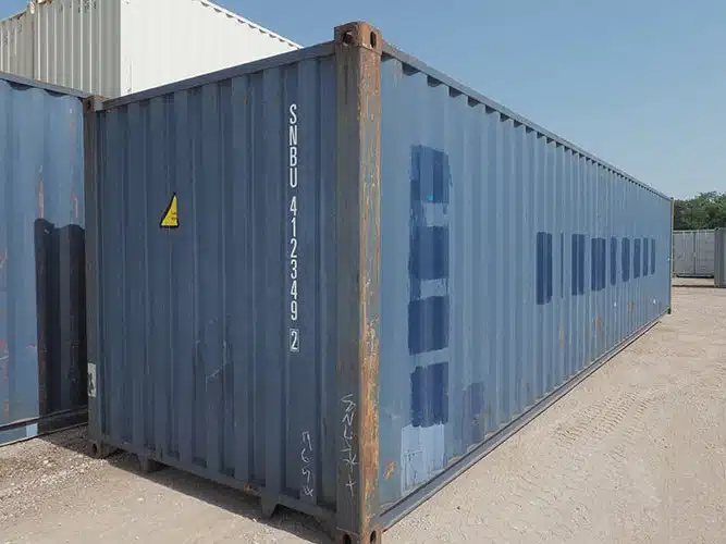 Os chamados contentores de viagem final usados ​​que oferecemos ainda podem viajar porque possuem um certificado de navegabilidade válido (matrícula CSC). São, por isso, impermeáveis ​​e a sua integridade estrutural é preservada. No entanto, após anos de utilização e viagens pelos mares do globo, é claro que apresentam sinais de desgaste: marcas de choques e amolgadelas, pintura danificada, vestígios de ferrugem, por exemplo. Se a estética é um critério importante para si, podemos naturalmente repintá-los na cor que desejar (custo adicional de 1.300€ sem impostos).