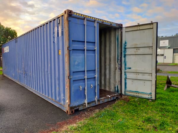 Container maritime quasi-neuf 40 pieds DRY (12 m de long, hauteur standard) en acier Corten. Idéal pour stocker ou vos projets de construction en container. Etanchéité garantie. Ouverture par portes doubles. Plancher bois contreplaqué marine.