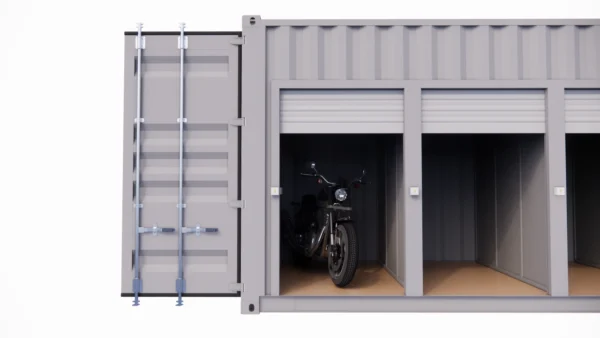 Garagem para motos para 4 lugares e 4 portas em contentor de 20 pés