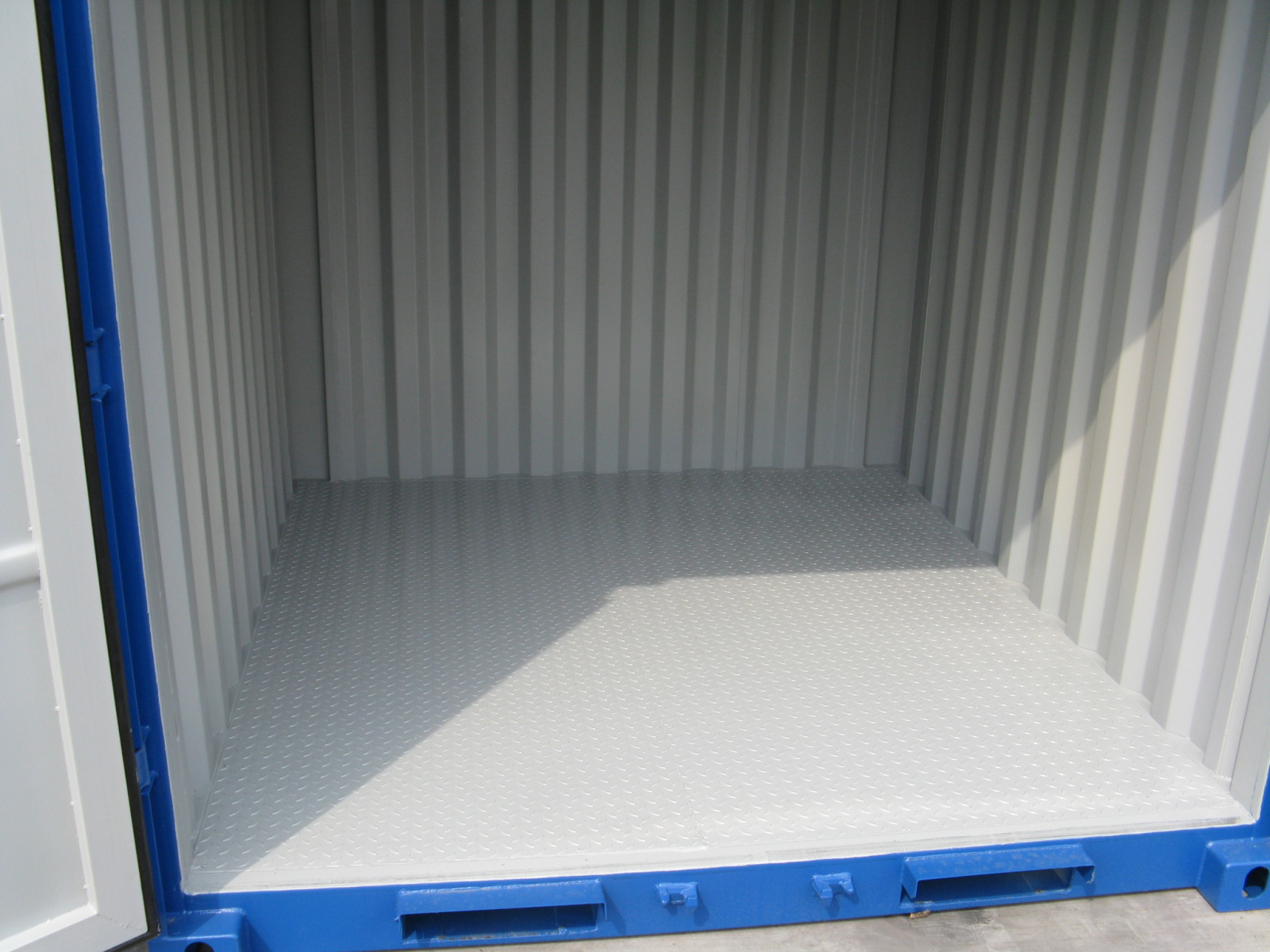 Novo pequeno contentor destinado apenas ao armazenamento (e não ao transporte marítimo). Área: 4,79 m². Volume: 9,82 m³. Portas de fácil abertura. Bolsos para garfos com largura standard. Fabrico europeu. Marca Containex. Protetor de cadeado incluído.